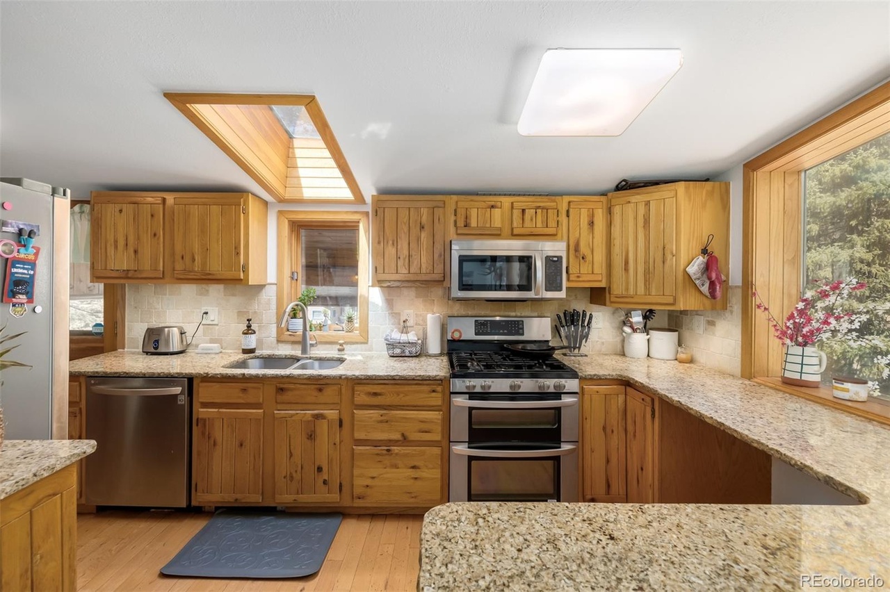 Microwave, Refrigerator, Dishwasher, Gas cooktop, Stove