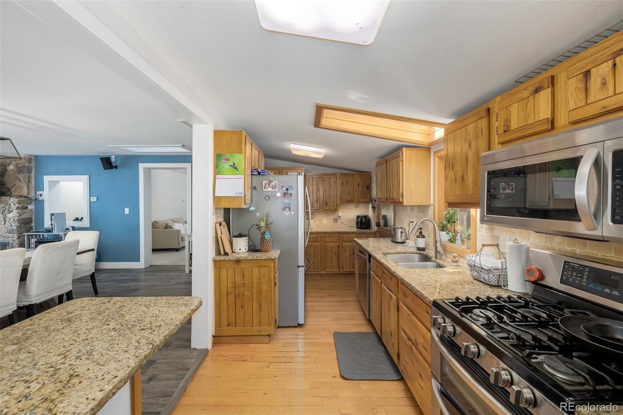 Kitchen open to family room, Disposal, Eat bar